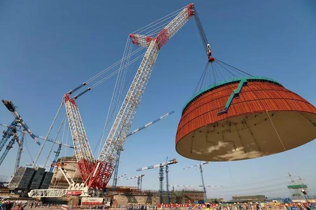 ▲中聯(lián)重科3200噸履帶式起重機(jī)成功助力福清核電6號機(jī)組穹頂