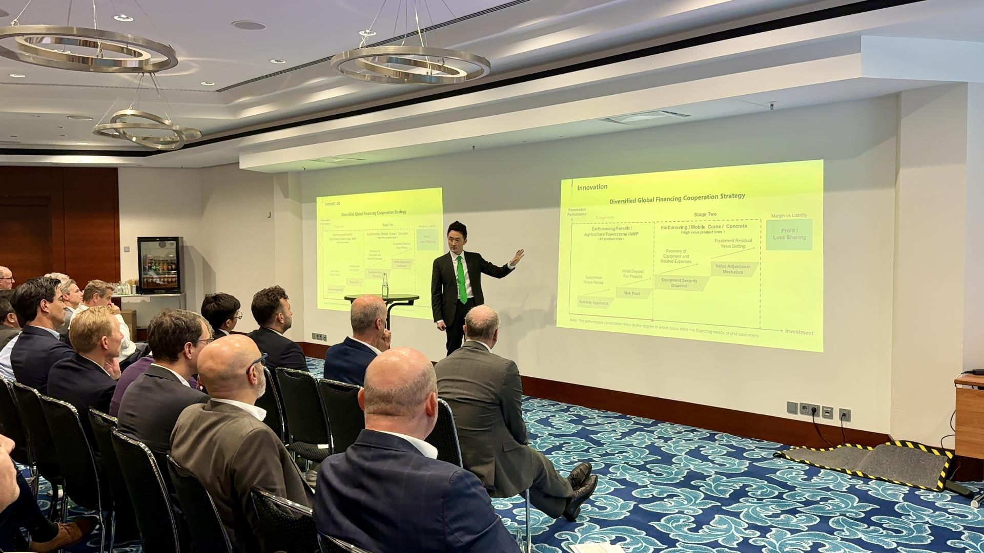 簽約儀式結(jié)束后,中聯(lián)重科金融業(yè)務(wù)部副總經(jīng)理顏昕博士應(yīng)邀出席了德意志租賃“全球合作伙伴峰會”(?Global Partner Solution),并在會上分享了中聯(lián)重科發(fā)展歷程、主要產(chǎn)品線及海外市場戰(zhàn)略。與會的德意志租賃全球各國總經(jīng)理紛紛表示期待與中聯(lián)重科在全球更多區(qū)域深化合作,實現(xiàn)互利共贏。