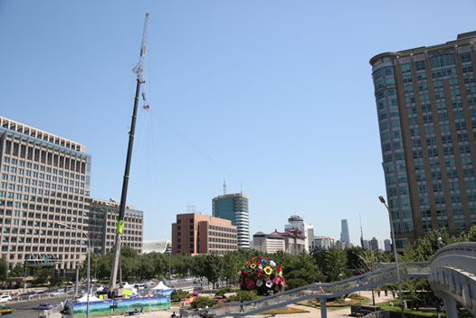 兩臺QY95大型起重機,它們的工作是定位支撐央視“高空二維有線索道攝像系統(tǒng)”,起重機位于東單和郵通街兩個位置,由兩端拉起560米的索道。用于拍攝習近平總書記乘車閱兵的畫面,并承擔側(cè)面拍攝閱兵方陣的重任。兩臺QY95起重機架設(shè)的長達560米的索道是全世界目前**長的一條二維有線索道。