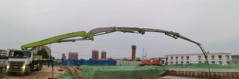 ▲中聯(lián)重科3橋49米泵車在駐馬店某重點工程施工
