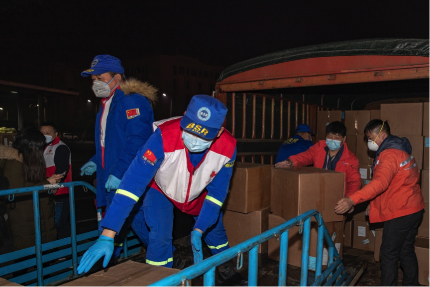 △湖南省紅十字會(huì)查驗(yàn)中聯(lián)重科捐贈(zèng)的疫情防護(hù)物資