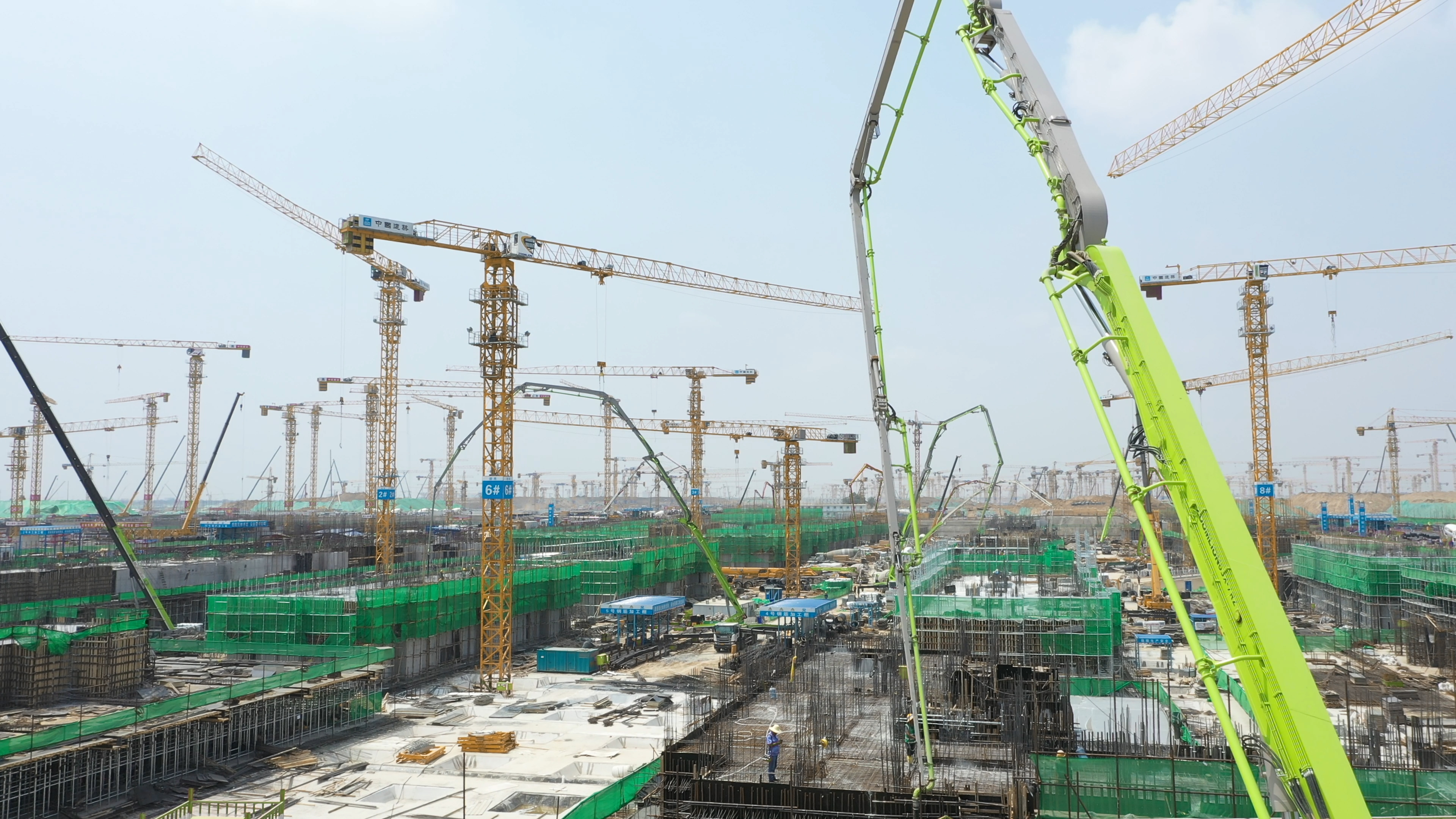 在容東片區(qū)建設(shè)現(xiàn)場,廣大建設(shè)者爭分奪秒、日夜奮戰(zhàn),高空中中聯(lián)重科塔機(jī)協(xié)同作業(yè),地面上極光綠泵車群高效澆筑。作為雄安新區(qū)率先開發(fā)建設(shè)區(qū)域,高效穩(wěn)定的施工裝備有力地保障了容東片區(qū)的施工進(jìn)度。參與該項(xiàng)目建設(shè)的雄安天碩機(jī)械設(shè)備租賃有限公司董事長陰志剛介紹道:“今年,我們陸續(xù)從中聯(lián)重科采購了30余臺泵車,用于容東管廊等項(xiàng)目的建設(shè)。這些設(shè)備投入施工以來,持續(xù)穩(wěn)定高效作業(yè),不僅泵送穩(wěn)、臂架穩(wěn),而且整個(gè)運(yùn)營過程還非常省油。”