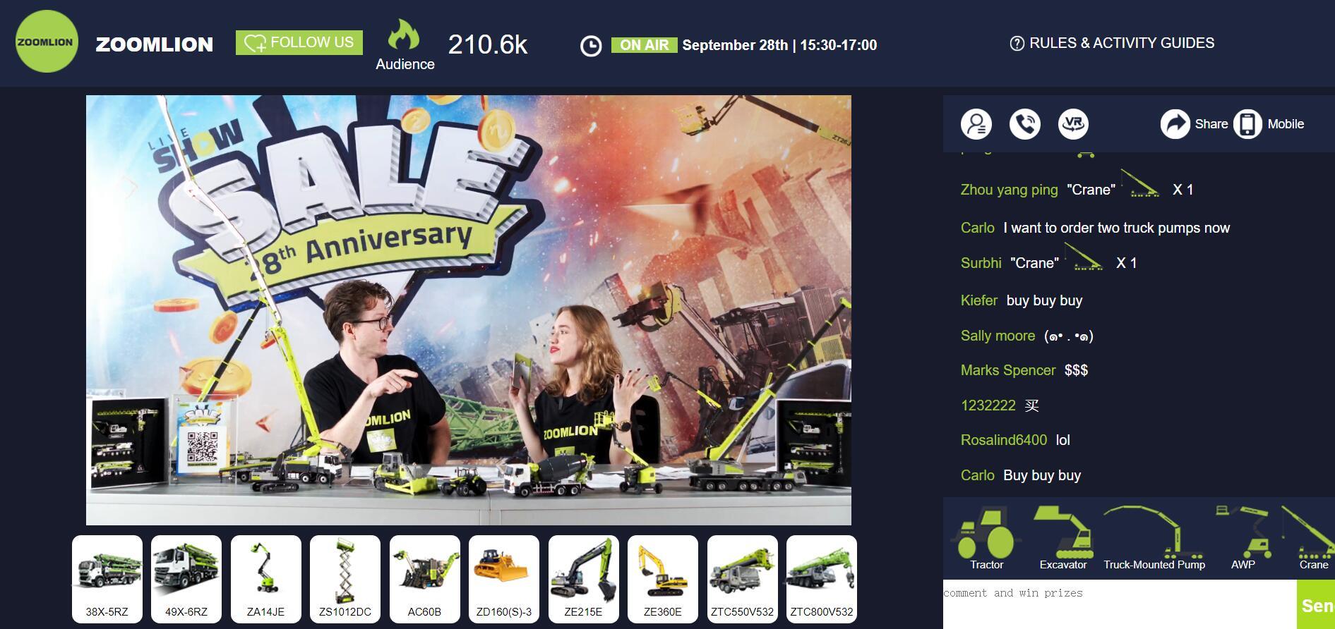 9月28日下午,中聯(lián)重科“928海外嗨購(gòu)節(jié)”盛大舉行,活動(dòng)吸引了來(lái)自全球各地的客戶、代理商觀摩,在線觀眾數(shù)量突破23萬(wàn),并以2.06億元的帶貨成果為海外直播寫下了良好的開篇。