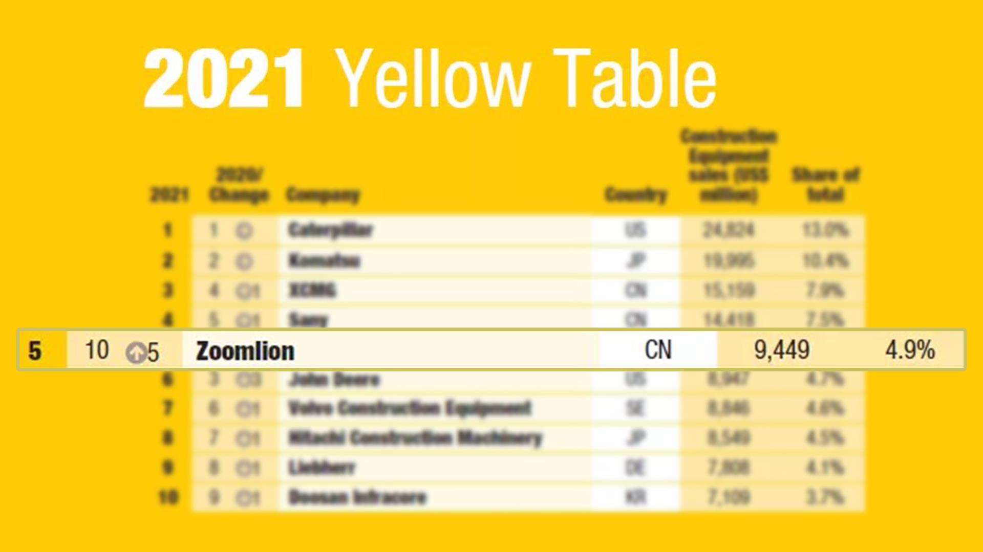 △在2021全球工程機(jī)械50強(qiáng)榜單中,中聯(lián)重科位列全球**五。