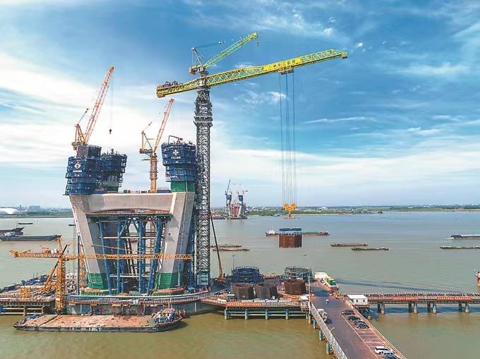 整體吊裝對接精準(zhǔn)又快速,吊裝“神器”展風(fēng)采!近日,正在常泰長江大橋施工的中聯(lián)重科全球首臺萬噸米級塔機(jī)W12000-450傳來重要?jiǎng)討B(tài):在它的助力下,大橋北主塔中塔柱首節(jié)部品鋼筋順利吊裝,并成功實(shí)施對接,標(biāo)志著常泰長江大橋主塔中塔柱施工進(jìn)入到部品鋼筋整體吊裝階段,大橋主塔施工也由此開啟了建設(shè)新階段。