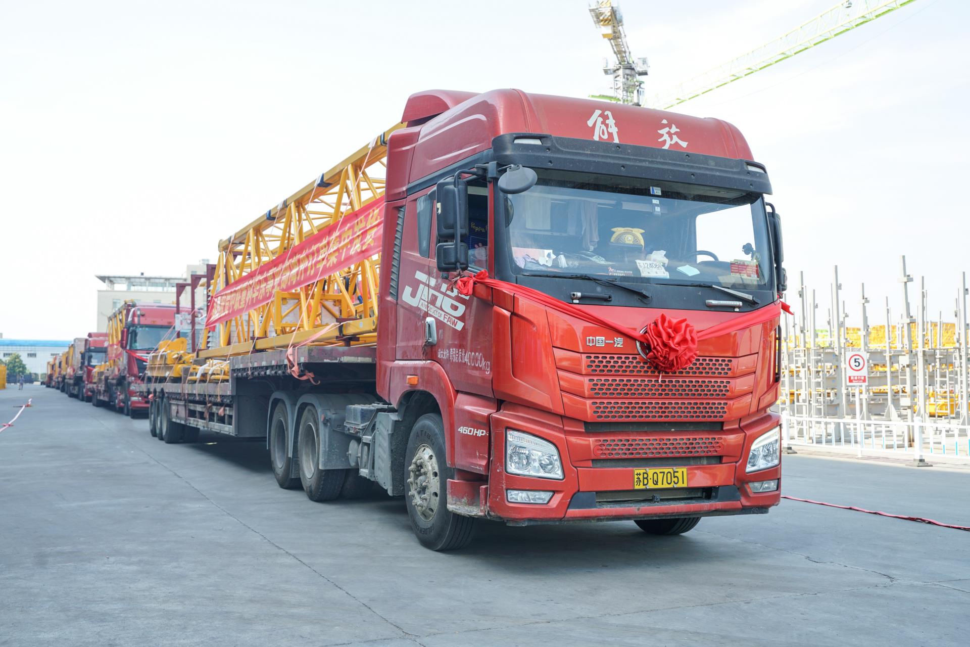 朝行匆匆晚亦忙,在持續(xù)高溫模式下,中聯(lián)重科產(chǎn)品也正全球熱銷,發(fā)車不停。8月15日,中聯(lián)重科海外訂單集中發(fā)貨儀式在江陰制造基地隆重舉行。隨著一聲“發(fā)車”指令,22輛滿載的貨車排成長龍駛向港口,火熱的發(fā)貨彰顯中聯(lián)重科塔機的強大市場競爭力。