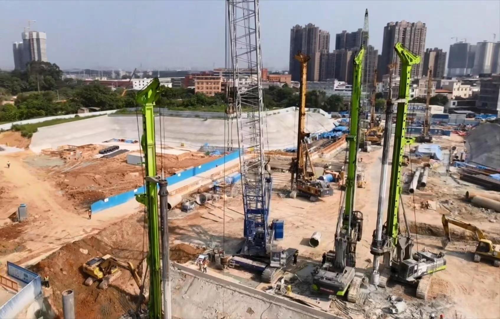先建地上火車(chē)站,再挖地下軌道交通線(xiàn)。在廣州“增城火車(chē)站綜合交通樞紐配套城市軌道交通車(chē)站土建預(yù)留工程”施工現(xiàn)場(chǎng),中聯(lián)重科的旋挖鉆機(jī)和全回轉(zhuǎn)鉆機(jī)正用新工法助力項(xiàng)目建設(shè)。這種工法可以在不影響地表火車(chē)正常運(yùn)行的情況下,進(jìn)行地下建筑的建設(shè),極大程度消除了建設(shè)施工對(duì)人們高鐵出行造成的不便。
