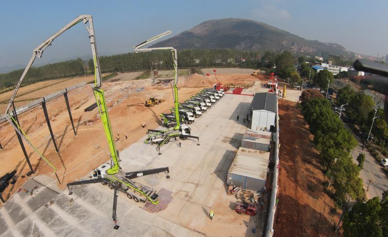 ▲批量交付的中聯(lián)重科全套混凝土設(shè)備