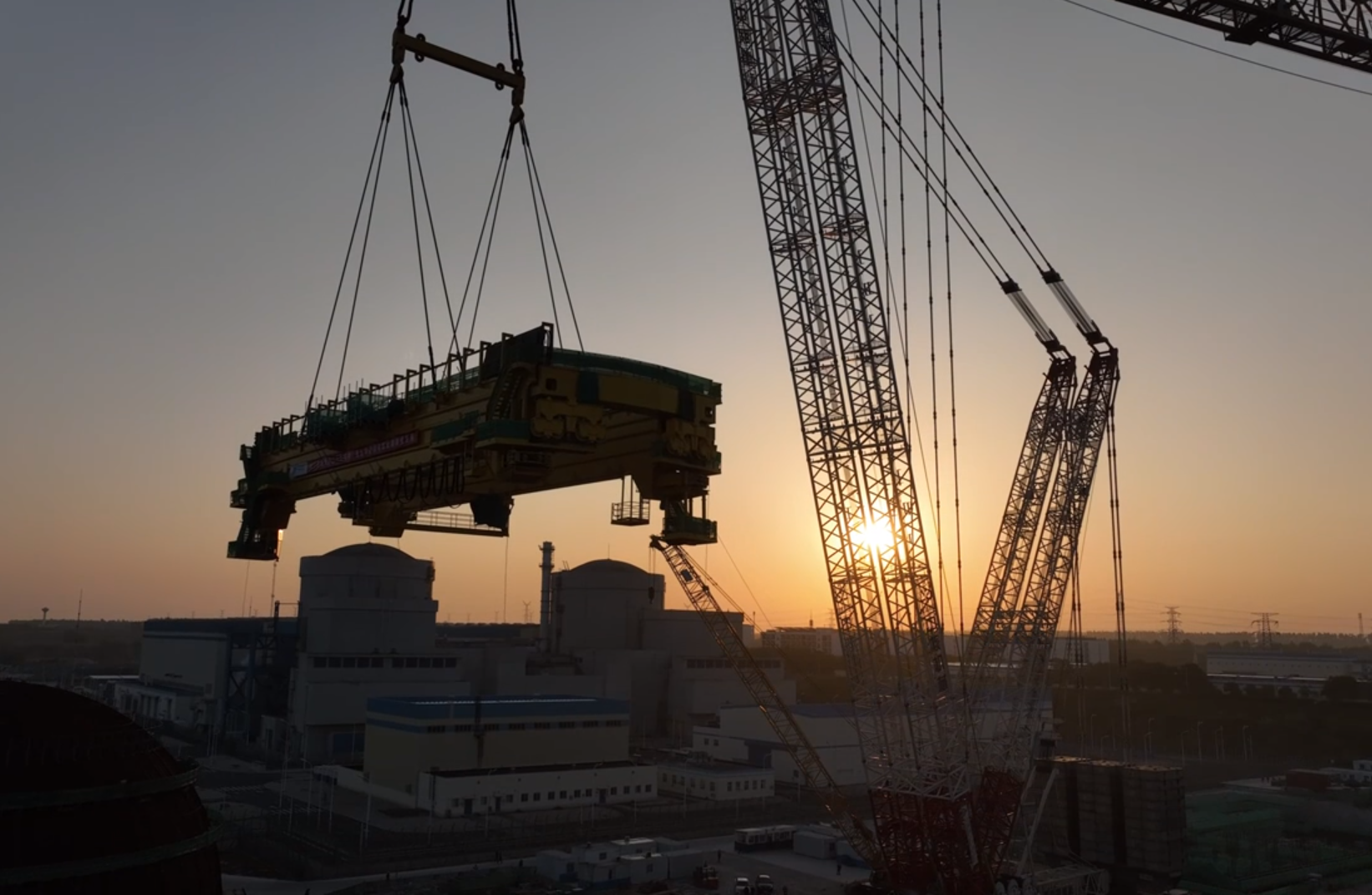 1月30日10時(shí)8分,中聯(lián)重科ZCC3200NP履帶起重機(jī)將華龍一號(hào)起吊重量**重的大件設(shè)備——海南昌江核電3號(hào)機(jī)組環(huán)吊主梁順利吊裝就位,助力提前三級(jí)計(jì)劃41天,為后續(xù)穹頂?shù)跹b和主設(shè)備的引入工作奠定了基礎(chǔ)。