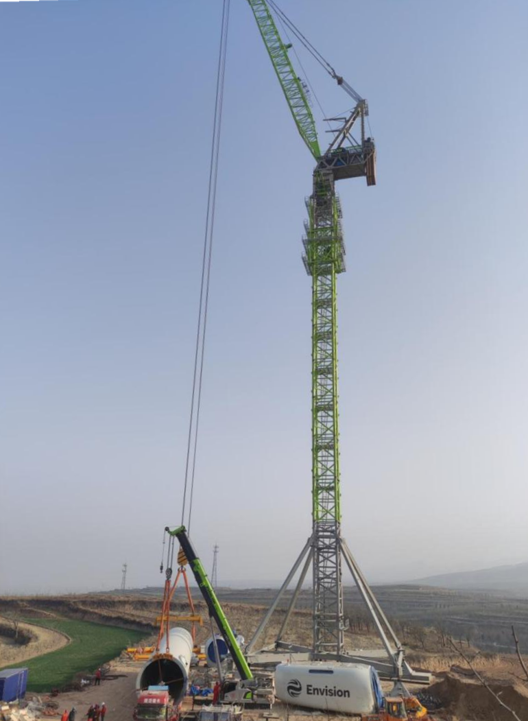 △中聯(lián)重科風(fēng)電動(dòng)臂塔機(jī)LW2340-180正在吊裝