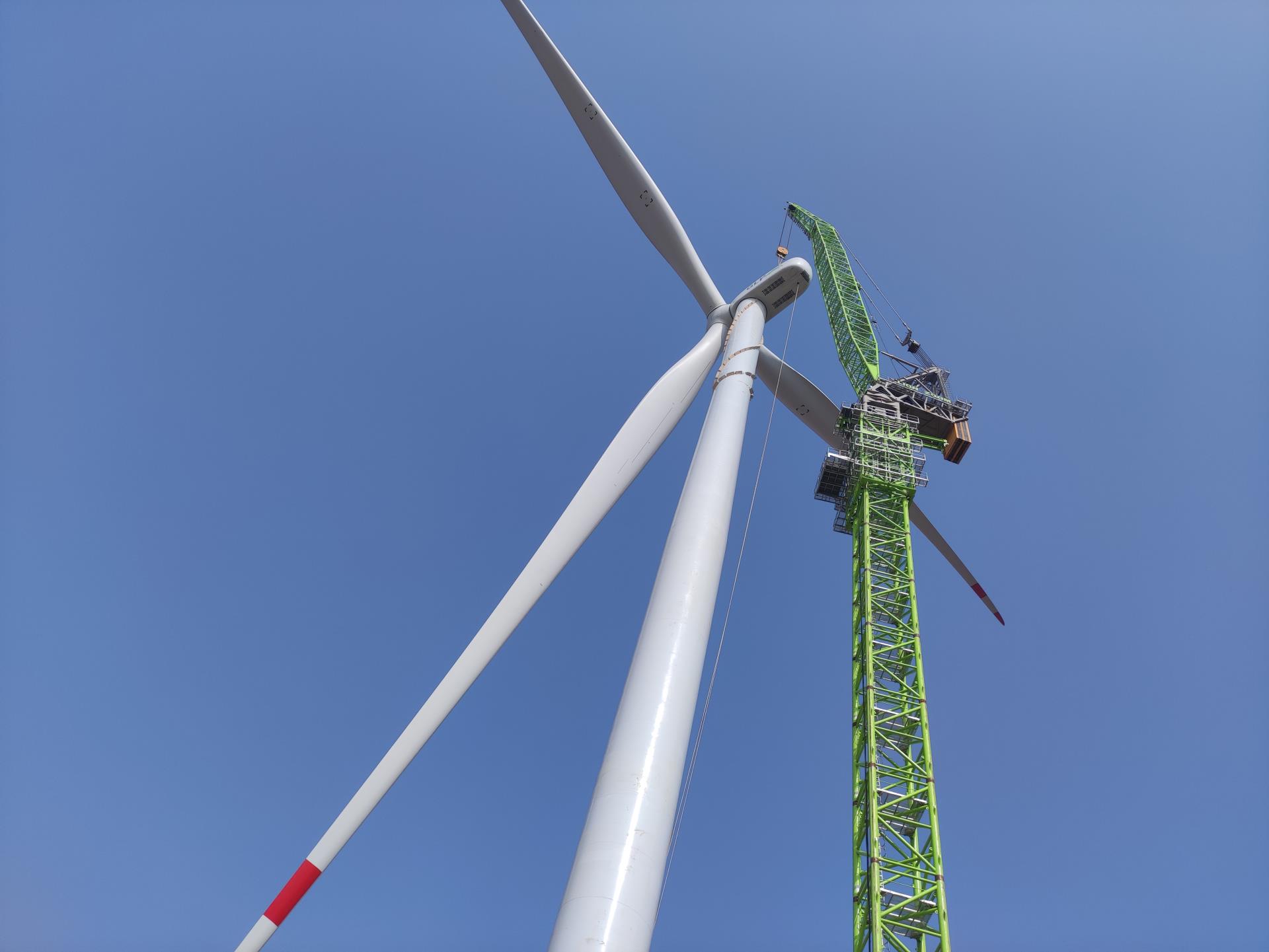 近日,山西運(yùn)城夏縣鄉(xiāng)間,一抹極光綠映襯著藍(lán)天,中聯(lián)重科LW2340-180型塔機(jī)吊鉤起落之間,將一個(gè)個(gè)風(fēng)電機(jī)組部件穩(wěn)穩(wěn)吊裝就位。在狹窄陡峭的山地丘陵,中聯(lián)重科風(fēng)電動(dòng)臂塔機(jī)輕松進(jìn)場(chǎng)立塔,穩(wěn)定優(yōu)異的施工表現(xiàn)得到客戶高度評(píng)價(jià)。