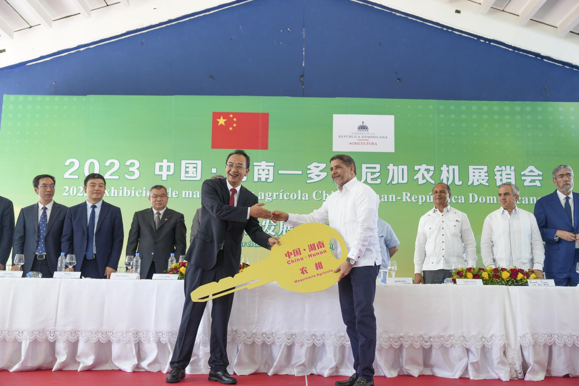 湖南省委常委、省委宣傳部部長楊浩東,中國駐多米尼加大使陳魯寧,多米尼加前總統(tǒng)伊波利托·梅希亞,多米尼加農(nóng)業(yè)部部長林博·克魯斯,中聯(lián)重科副總裁孫昌軍等出席開幕式。中國·湖南—多米尼加農(nóng)機展銷會為期3天,旨在加強湖南省與多米尼加在農(nóng)業(yè)領域的交流互鑒,深化雙方農(nóng)業(yè)合作,進一步提高多米尼加農(nóng)業(yè)生產(chǎn)效率和質(zhì)量,為多米尼加農(nóng)業(yè)機械化、現(xiàn)代化發(fā)展增添新動力,也為湖南省農(nóng)業(yè)企業(yè)國際化發(fā)展提供新機遇,實現(xiàn)互利共贏。