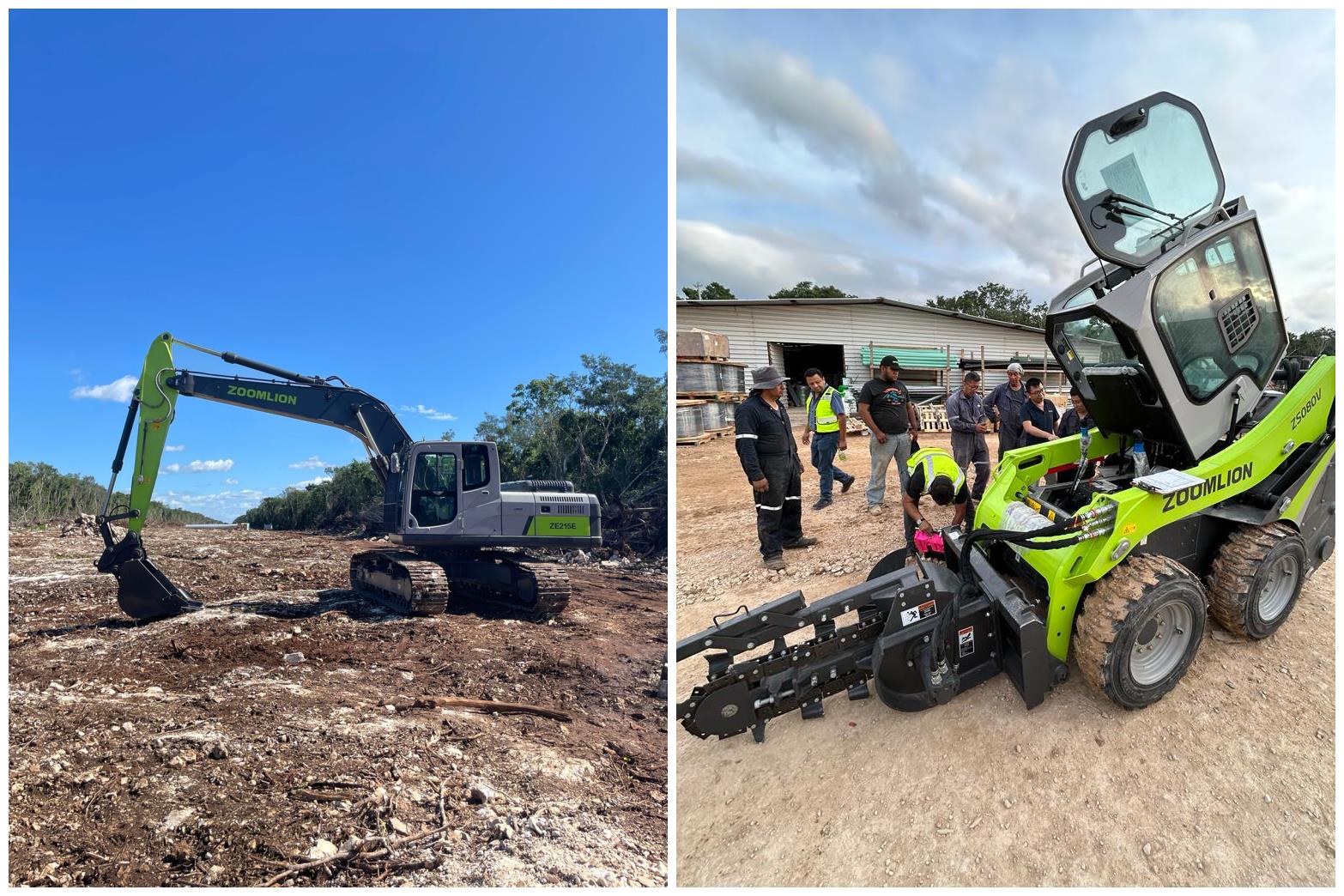 中聯(lián)重科挖掘機(jī)、推土機(jī)、滑移裝載機(jī)等土方機(jī)械產(chǎn)品于今年3月進(jìn)場(chǎng)施工,包括ZE215E PRO、ZE370E PRO等型號(hào)的中大型挖掘機(jī),以及多臺(tái)ZD220-3、ZD320-3等推土機(jī)。目前,中聯(lián)重科設(shè)備集中在瑪雅鐵路卡門(mén)灣-圖盧姆段,主要參與前期的開(kāi)路和土石方工程,進(jìn)行土方、挖溝和開(kāi)路、平整等施工。