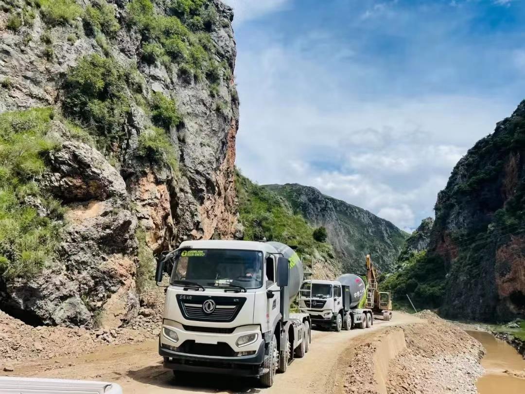 △川藏線上的中聯(lián)重科純電動(dòng)攪拌車