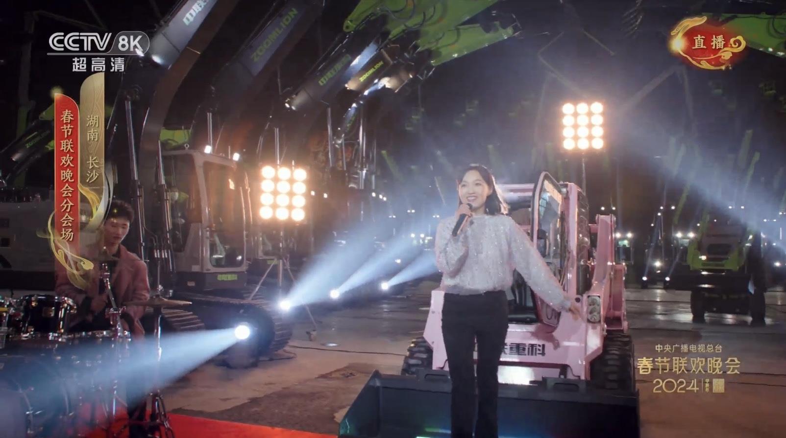當(dāng)春晚的鏡頭來(lái)到中聯(lián)智慧產(chǎn)業(yè)城土方機(jī)械園,熒屏上頓時(shí)溢滿了科技感和機(jī)械感:中聯(lián)重科數(shù)十臺(tái)泵車、起重機(jī)展臂傲立舞臺(tái)后方兩側(cè),兩臺(tái)泵車在30米的高空用臂架組成一個(gè)巨大愛(ài)心,兩百多臺(tái)挖掘機(jī)依次排開(kāi),數(shù)十臺(tái)高空作業(yè)平臺(tái)舉臂林立,極為壯觀;舞臺(tái)上兩臺(tái)裝載機(jī)隨歌“伴舞”,一粉一綠活潑可愛(ài)。樂(lè)隊(duì)貝斯手、吉他手的“站臺(tái)”都是用的高空作業(yè)平臺(tái)。在“小綠軍團(tuán)”眾星拱月中,歌手黃米依從裝載機(jī)中走出來(lái),傾情演唱著《星辰大?!贰4髧?guó)重器壯觀施工之美,中聯(lián)智慧產(chǎn)業(yè)城土方機(jī)械園燈塔工廠制造之美,以及歌舞演唱之美盡情展現(xiàn)。滿滿的“長(zhǎng)沙制造”元素,在熒屏上“龍”光煥發(fā)驚艷呈現(xiàn)。