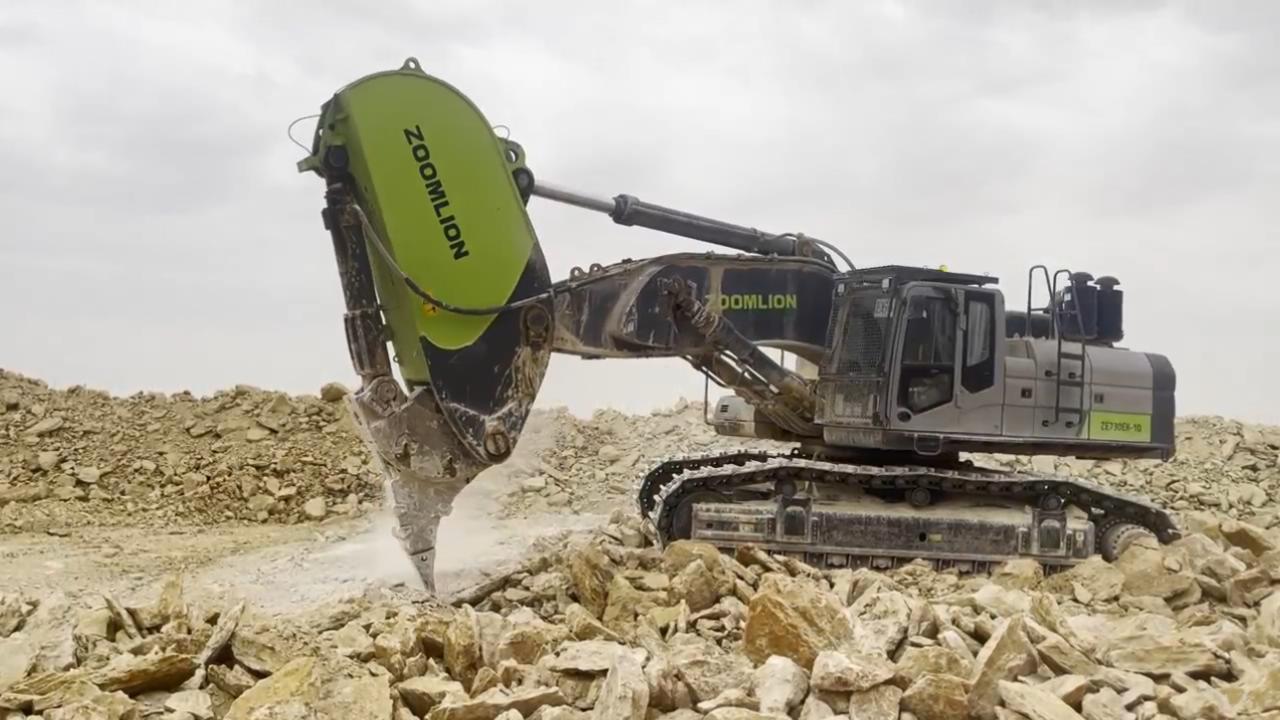 △中聯(lián)重科挖掘機(jī)正在進(jìn)行破碎作業(yè)