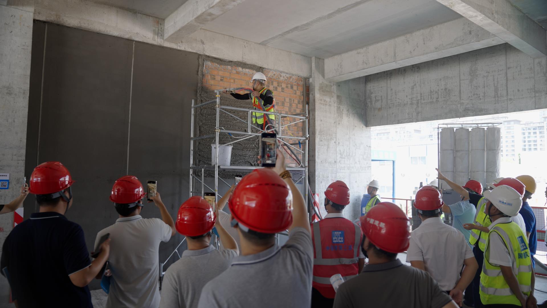 現(xiàn)場工作人員介紹道:“整套系統(tǒng)只需2—3人操作,施工效率快,人均每天可達(dá)100平方米,是傳統(tǒng)效率的2倍有余?!?