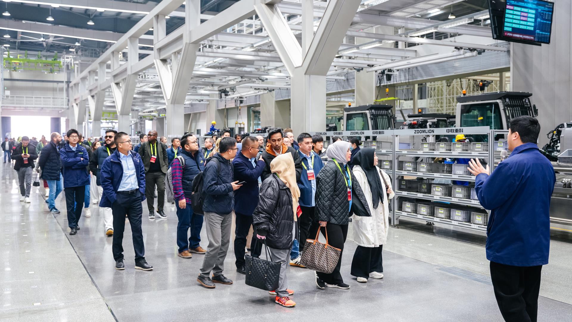 期間,海外客戶參觀了中聯(lián)智慧產(chǎn)業(yè)城土方機(jī)械園、高空機(jī)械園、起重機(jī)械園和混凝土泵送機(jī)械園等四大全球領(lǐng)先的智造園區(qū),觀摩了緊湊型設(shè)備聯(lián)合施工、綠色無人裝備演示。近距離親身感受,讓活動(dòng)嘉賓對(duì)中聯(lián)重科引領(lǐng)行業(yè)的智造成果和智能化、綠色化水平贊嘆不已。