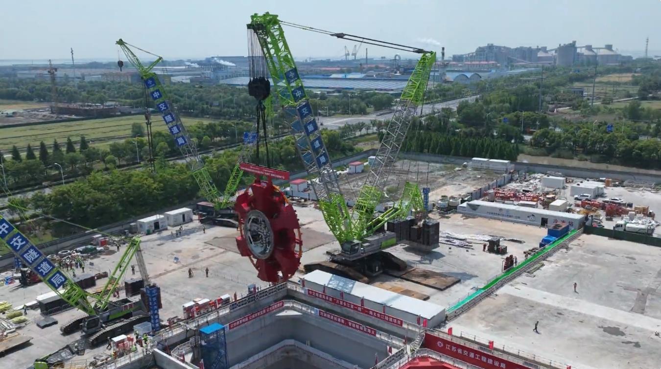5月11日上午,世界**長的公路水下盾構隧道——海太長江隧道項目迎來重要節(jié)點。隨著現(xiàn)場總指揮一聲令下,國內**大直徑盾構機“滄淵號”重達481.5噸的巨型刀盤,由中聯(lián)重科1600噸履帶起重機順利吊裝下井,標志著項目建設再次邁出關鍵一步。