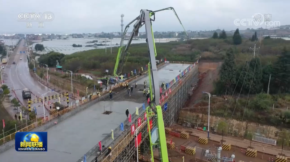 ▲中聯(lián)重科泵車正在項目現(xiàn)場進行施工(圖片來源:央視新聞)