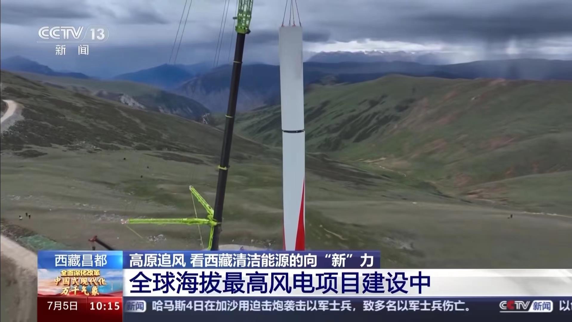 世界屋脊之上,極光綠與風(fēng)機(jī)白并肩傲立,助力點(diǎn)亮萬(wàn)家燈火。近日,央視新聞?lì)l道關(guān)注西藏昌都全球海拔**高風(fēng)電項(xiàng)目建設(shè),畫面中,中聯(lián)重科全地面起重機(jī)作為主力設(shè)備,順利吊裝項(xiàng)目首臺(tái)風(fēng)機(jī),這一重要時(shí)刻也標(biāo)志著工程建設(shè)邁入新的里程碑。