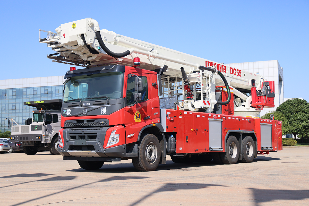 中聯(lián)牌DG55B6型55米登高平臺消防車,采用5+2雙伸縮臂結(jié)構(gòu),配置大流量水力系統(tǒng)及智能控制系統(tǒng),整車滅火能力及高空救援能力強(qiáng)悍,動作平穩(wěn)快捷,操作簡便。適用于城鎮(zhèn)、港口、工礦企業(yè)高層建筑以及石油、化工、油罐、倉庫等大型建筑滅火及救援。