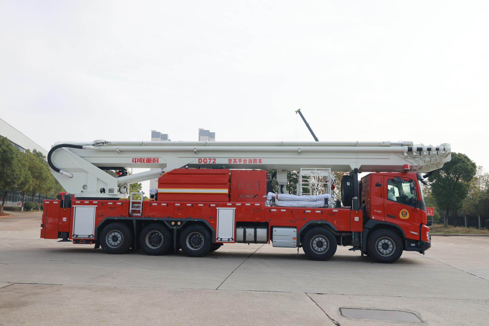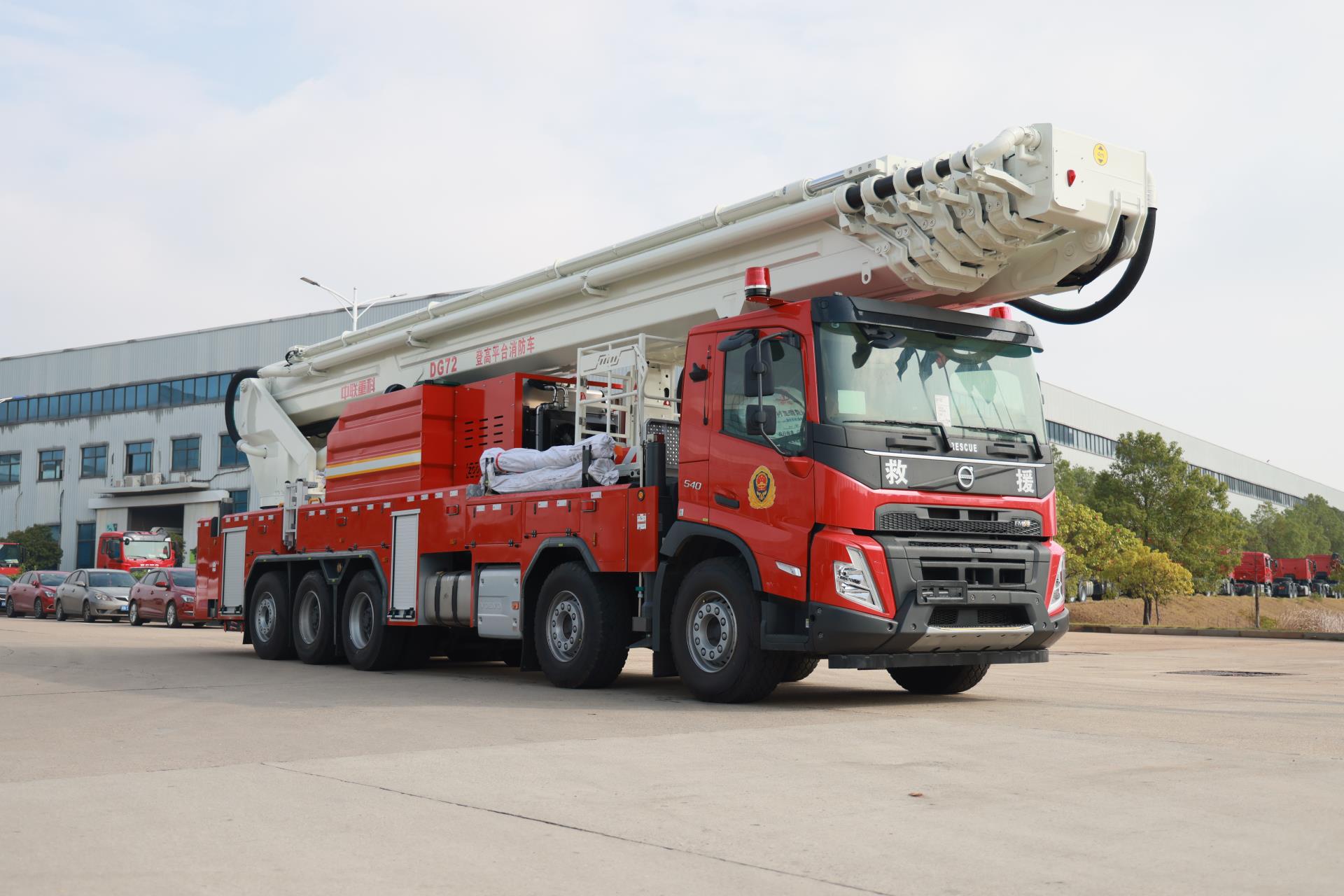 中聯(lián)牌DG72型登高平臺消防車,結合國際上消防車的先進理念和消防實戰(zhàn)經(jīng)驗創(chuàng)新設計而成,具備強大的高空救援和消防滅火能力,整車性能優(yōu)越,快速高效,操作性、安全性及智能化控制處于國內(nèi)領先水平。
