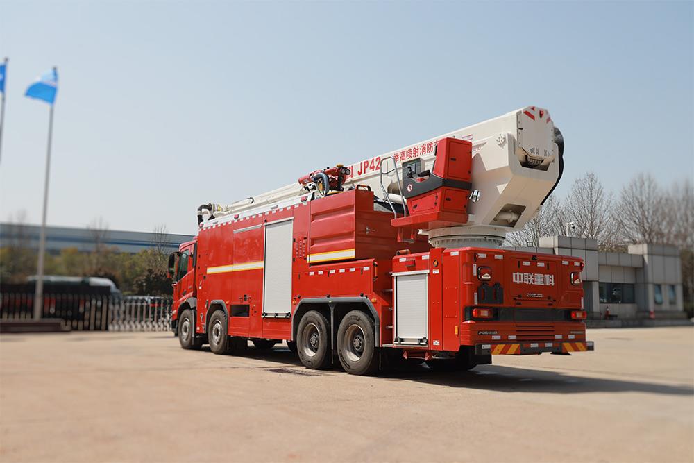 中聯(lián)重科42米三相射流舉高噴射消防車是集高噴、水罐、泡沫、干粉多功能于一體的新型高效滅火裝備。